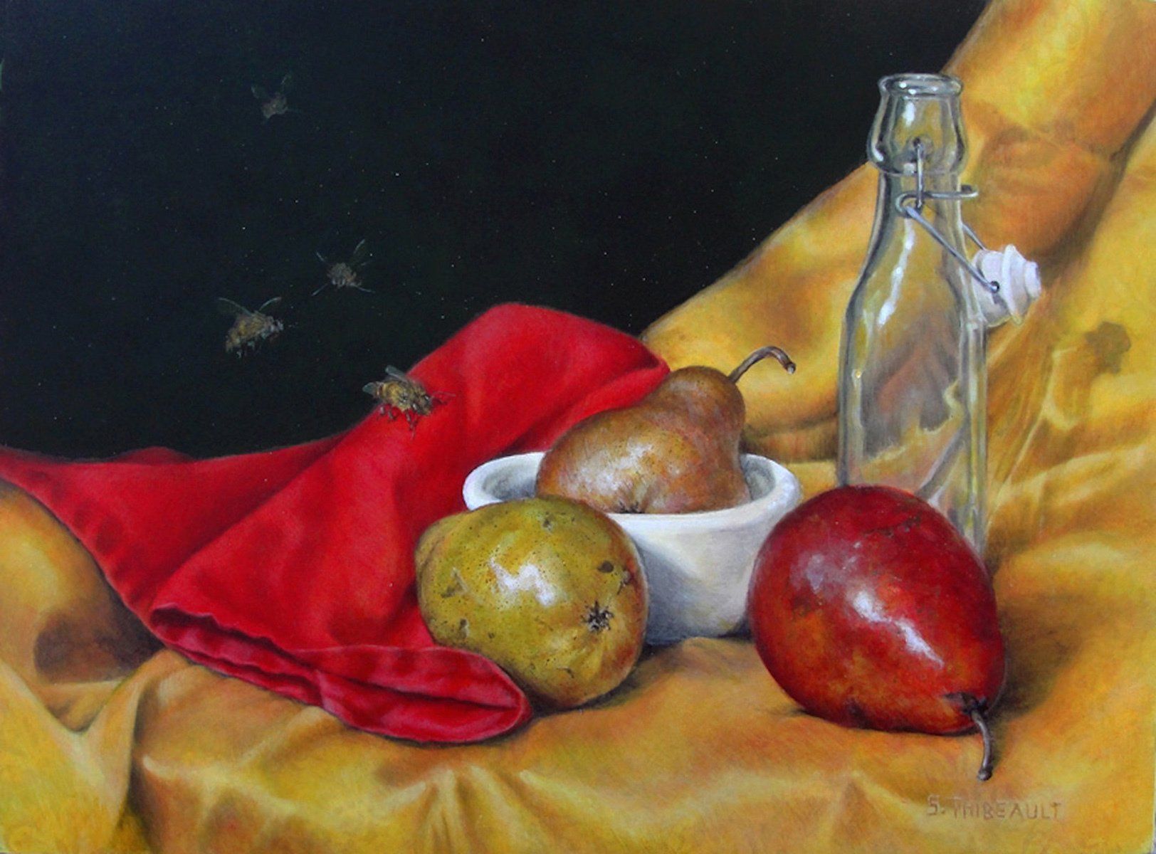 Bees Descending on Three Pears